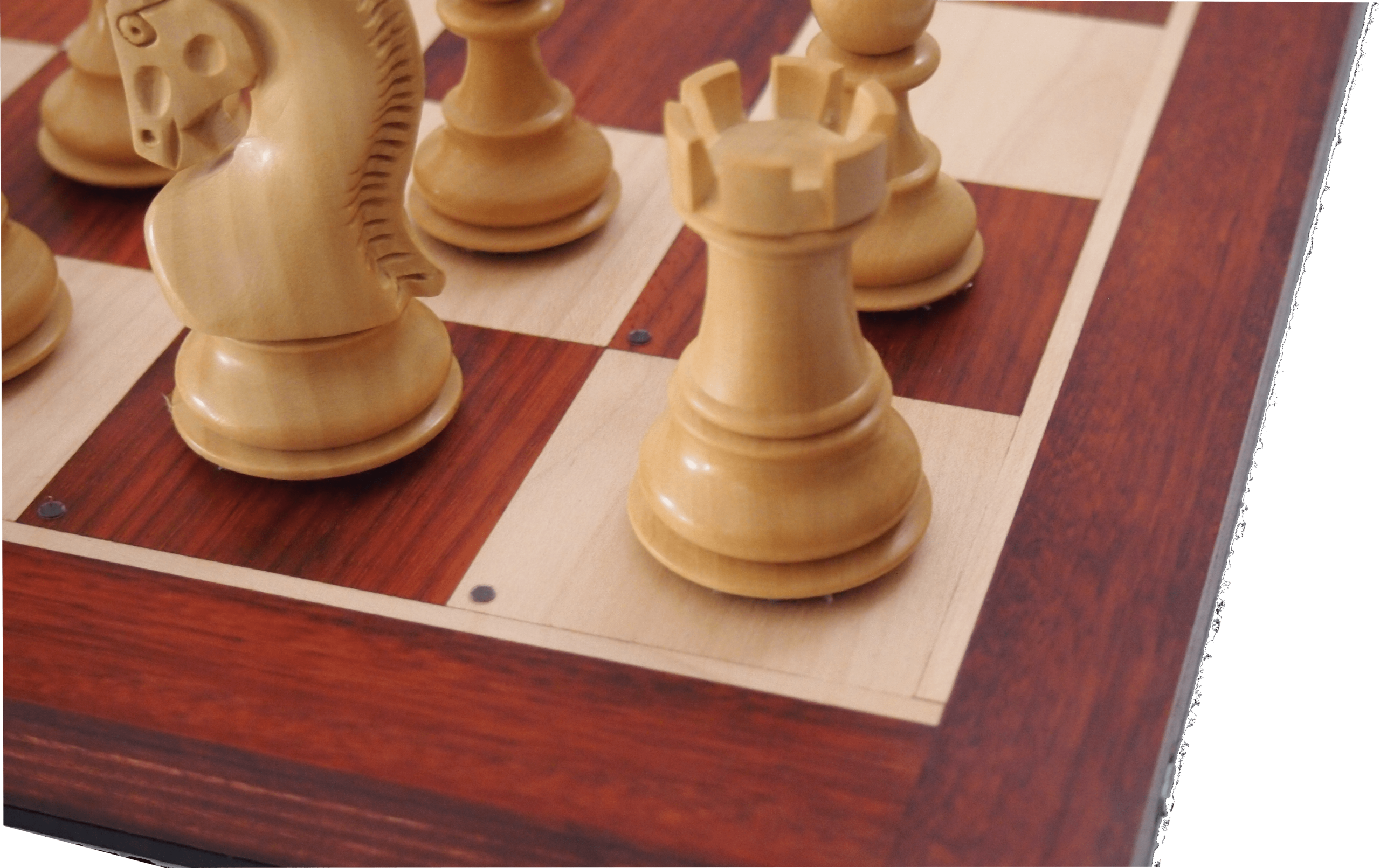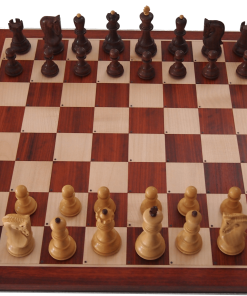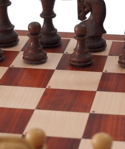 The Fazio chessboard is a beautiful collector’s piece made entirely of birch that has a refined solid top in padauk and boxwood. The sizes of this board are the following: 50cm x 50cm x 2.2cm with a 55mm square. It comes complete with a set of 34 electronic chips to transform a traditional chess pieces set into an electronic one (the electronic pieces 3,75″ Russian set shown are not included and are not necessary but if necessary can be purchased separately). The beautiful red of the padauk shines in contrast to the light color of the boxwood.